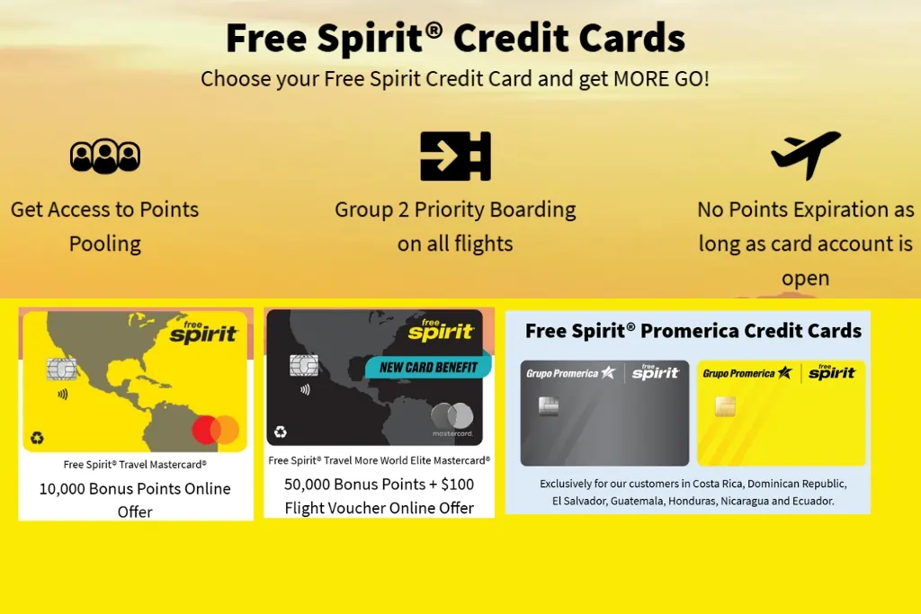 Want to earn even faster? Spirit offers Free Spirit Credit Cards with Bank of America. The regular Free Spirit Credit Card earns points on daily shopping and Spirit flights.